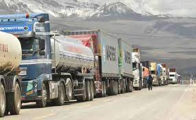 Cola de camiones en puertos de Rosario